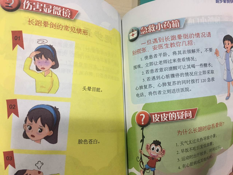 据悉,为帮助学生了解体育运动的科学知识及方法,引导学生科学运动,养成良好的体育锻炼习惯,进而享受运动带来的快乐,并在快乐中学会遵守规则和团队合作,促进身心健康、体魄强健。上海市教委组织专家力量,历时两年编写了《学生体育运动安全手册》。作为全国首套中小学体育运动规范的系列读本,专家组将学生体育运动安全手册分成小学版和中学版。通过图文并茂、漫画人物讲故事的形式,呈现了学生在中小学阶段需要掌握的运动科学知识和预防体育运动伤害的科学方法。小学版以图片为主,内容表述充满童趣,将每个身体部位易发生的伤害事故描述成真实情景,通过卡通形象来讲解情况发生的原因、救治方法和预防措施;中学版注重知识传授,增加了人体生理、环境卫生等内容,主要讲解运动项目中易出现的运动损伤。