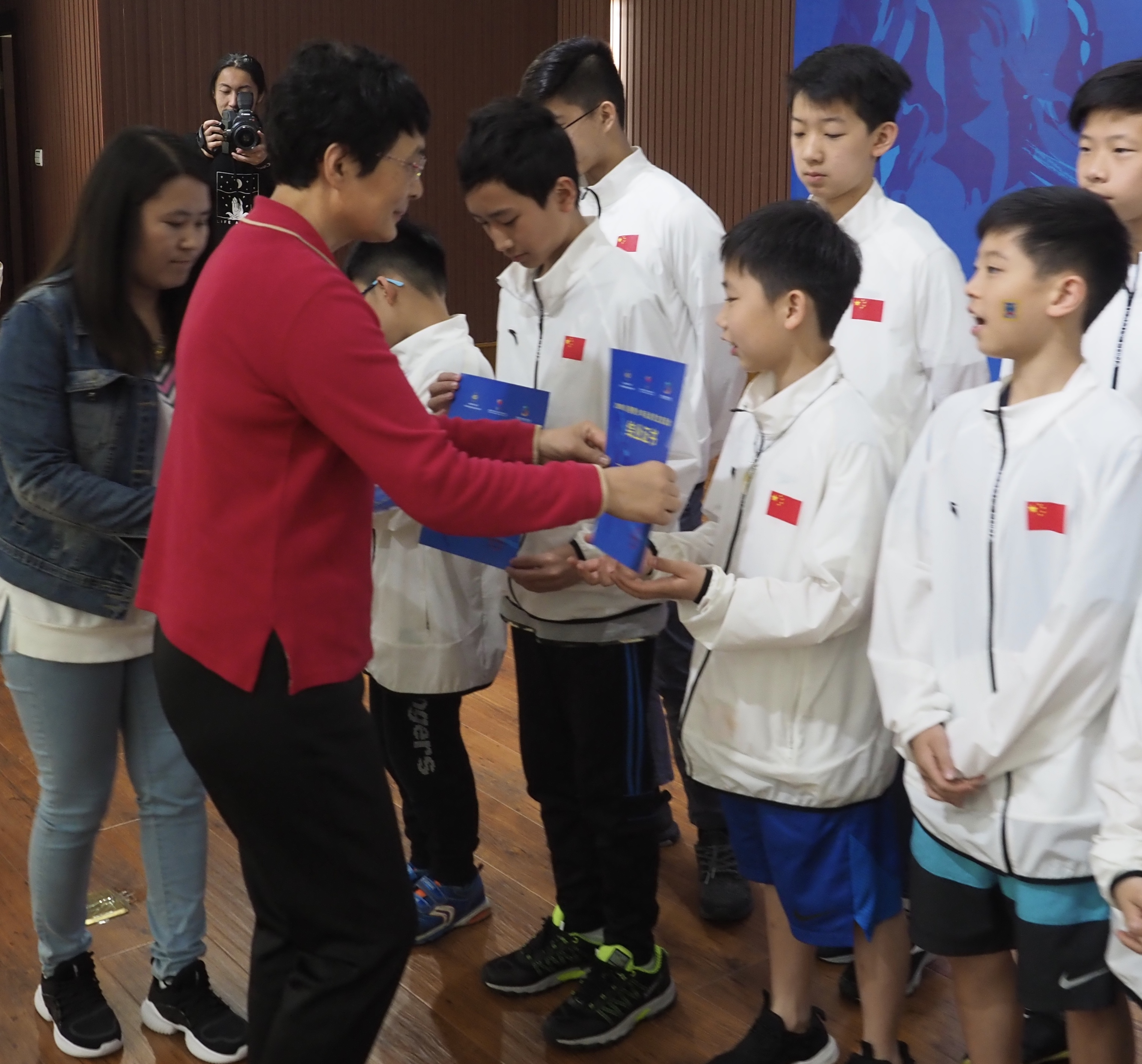 感恩相遇,快乐相处。香港海天体育会高级游泳教练年云为了表达谢意,向四川大学-香港理工大学灾后重建与管理学院赠送纪念品。之后,由任军与www.48365365.com社会体育指导中心、中国社会体育指导员协会工作部副主任钦怿等领导嘉宾,分别向香港海天体育会的队员们颁发了结业证书,并殷切寄语,祝福他们学业精进、人生精彩。